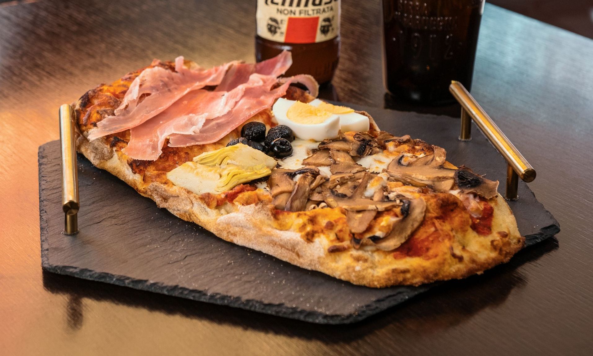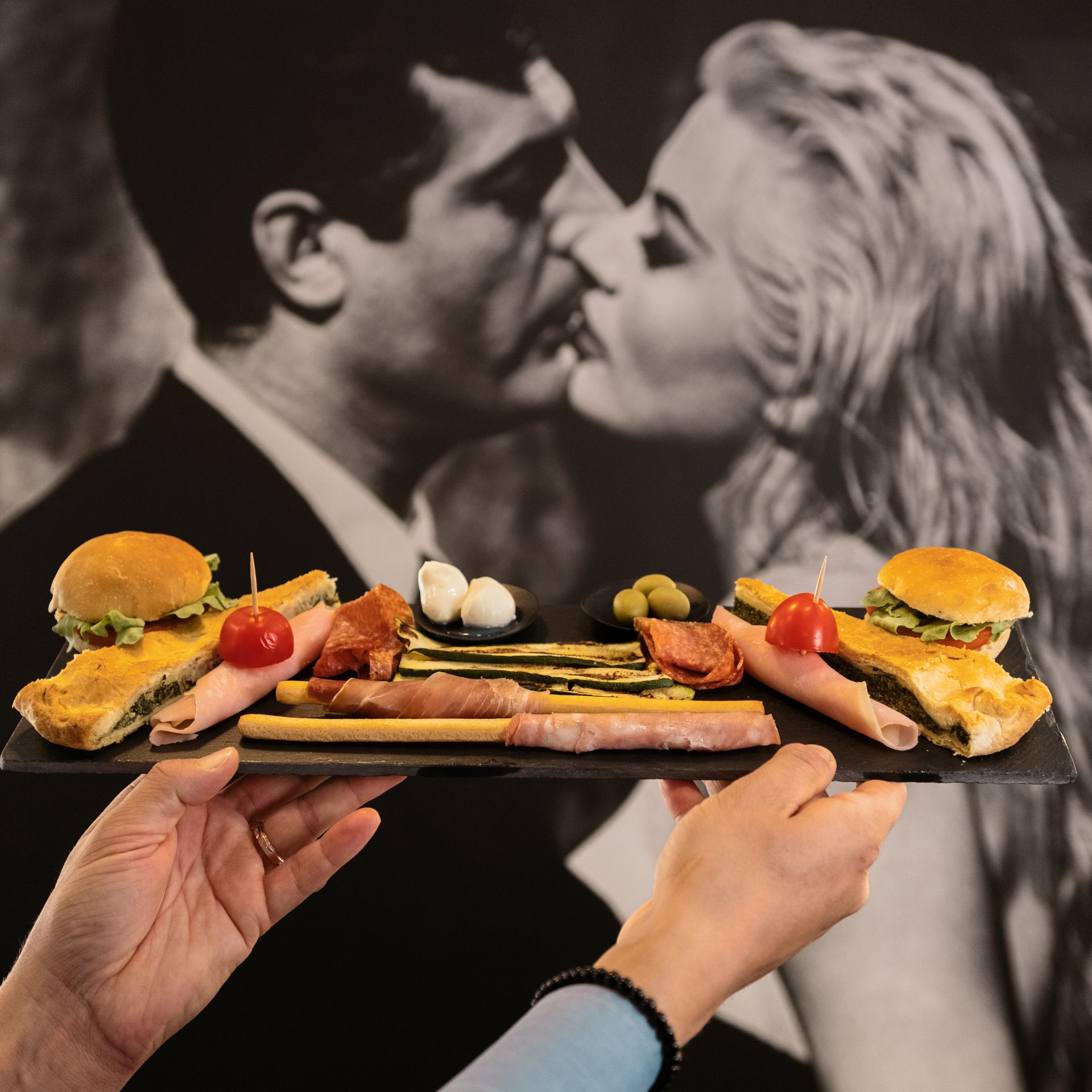 Accompagna il tuo drink con tipiche focacce romane, torte salate, pizze al taglio e prodotti di gastronomia locale come salumi e formaggi.